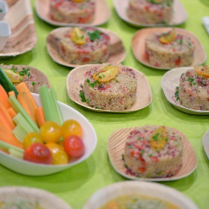 * Dômes de taboulé de quinoa pré-germé aux petits légumes d’été